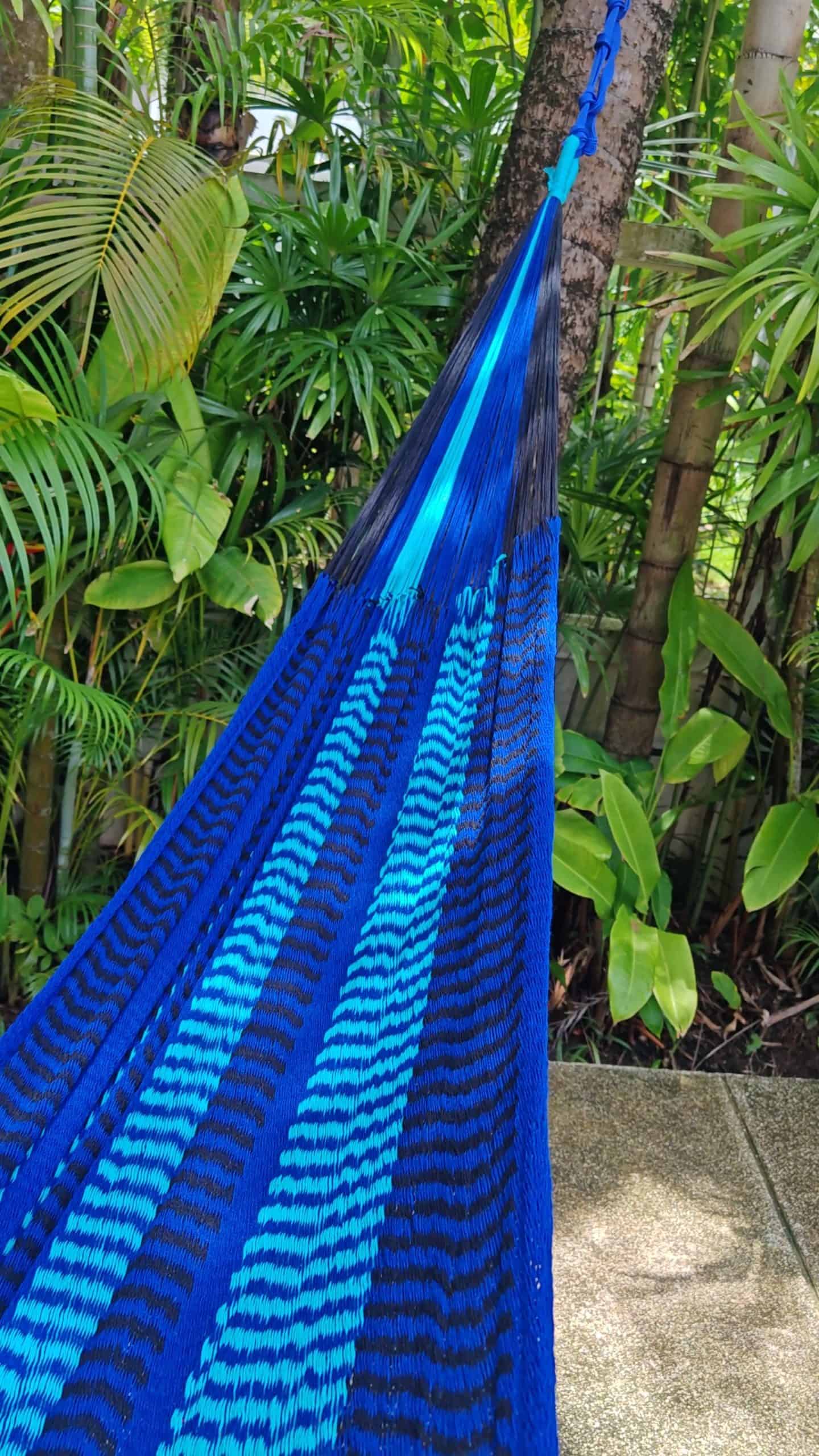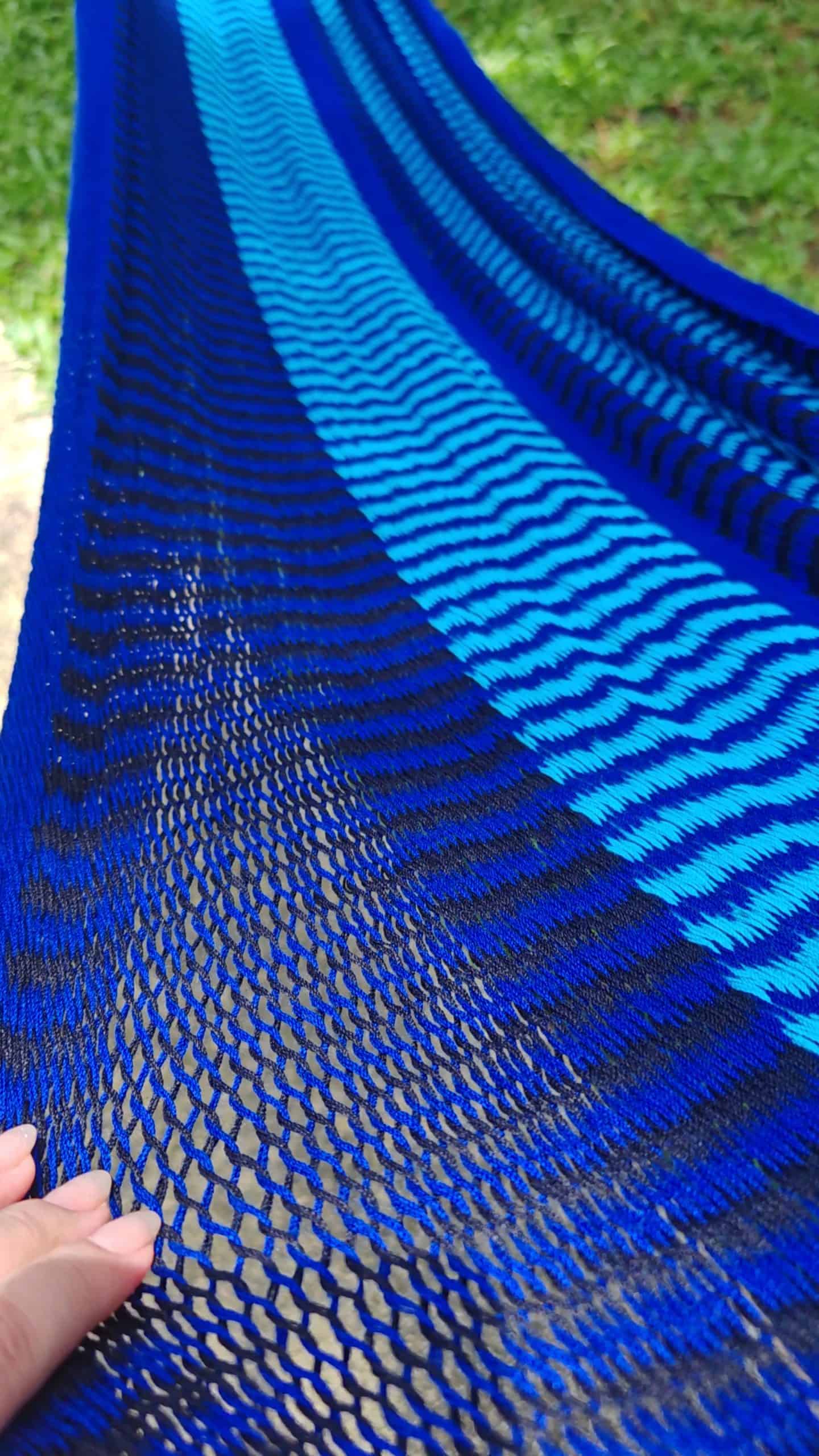 Dive into serenity with the “Andaman” hammock, showcasing a beautiful spectrum of deep ocean blues.