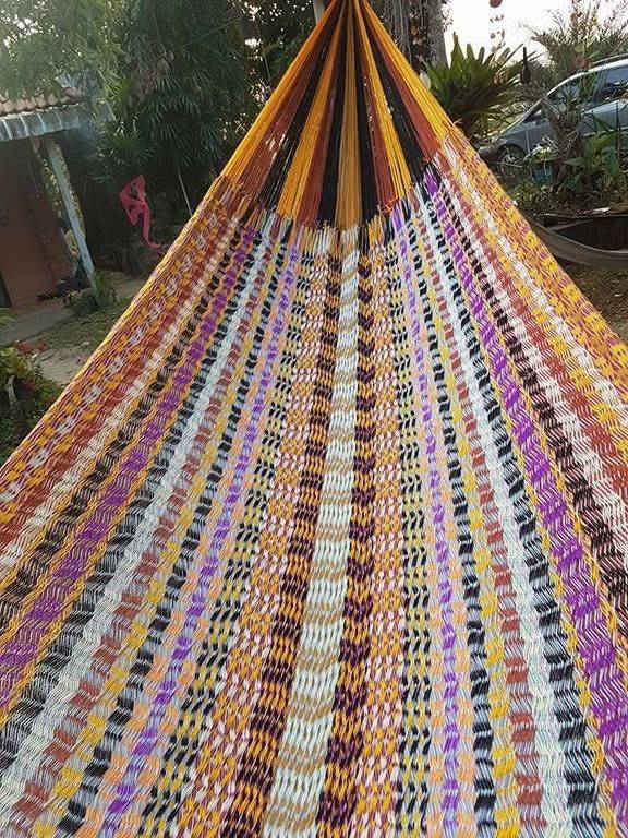 Handmade hammock, made in Thailand using Mexican technique with Acrylic yarn. At ULA Hammocks – we support the local community here in Thailand, we work with several teams and always create new pieces to “make your holiday at home”