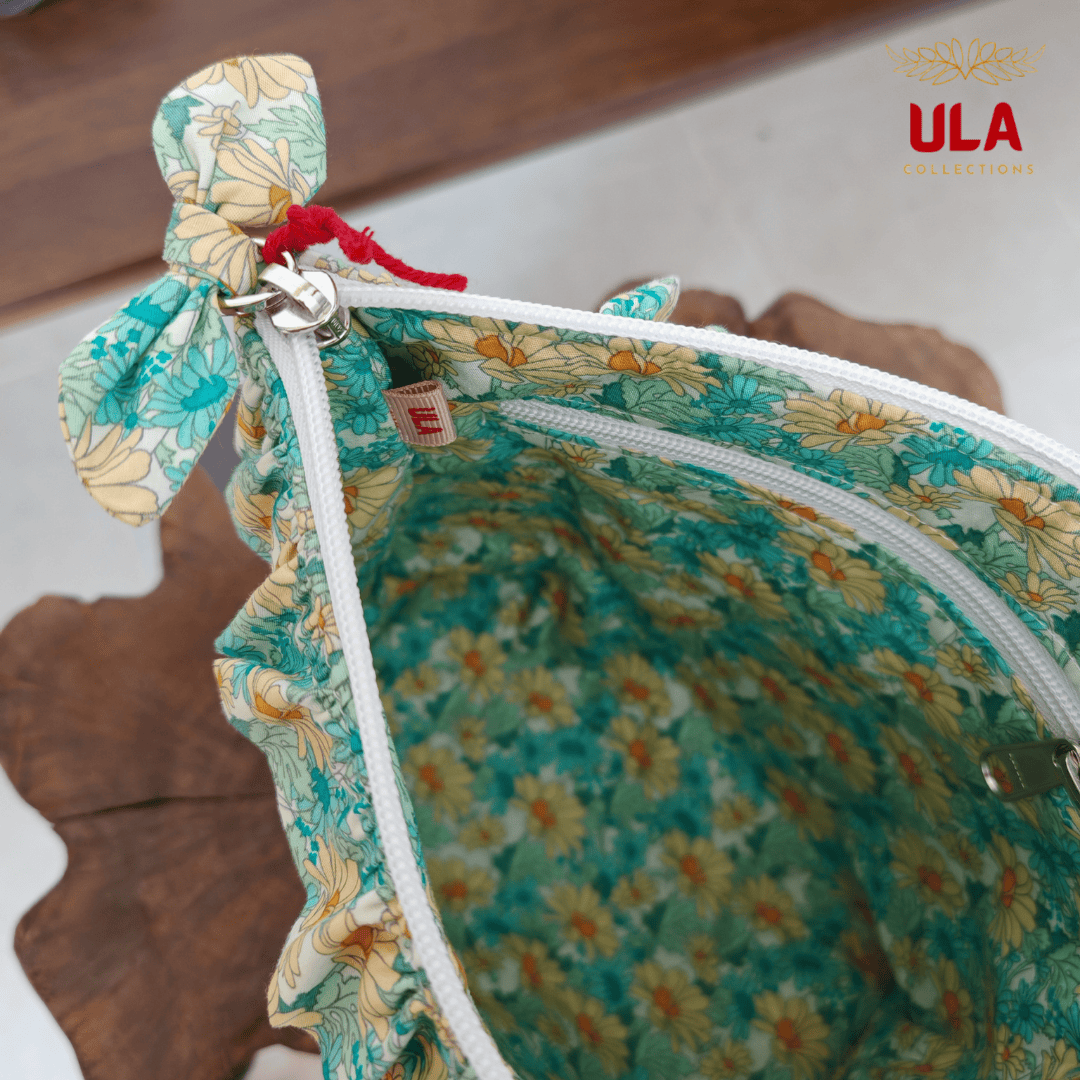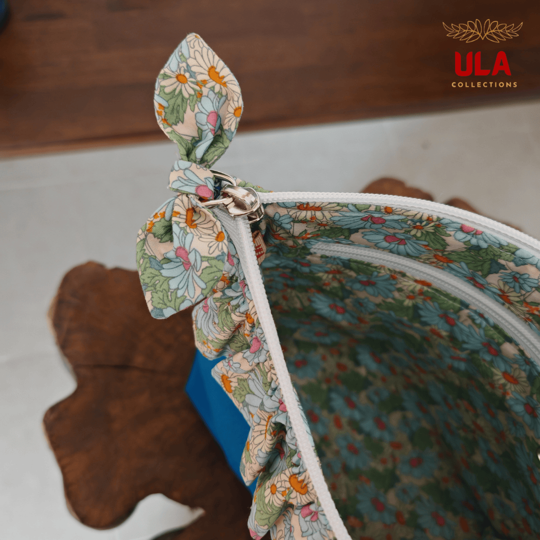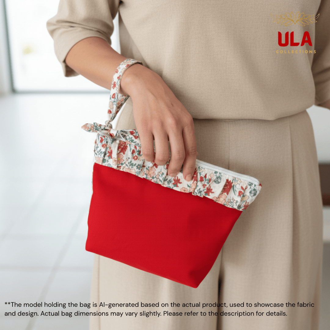 Discover the ULA Cotton Charm Wristlet Pouch—where artisanal beauty meets everyday function. This handcrafted companion is thoughtfully made from 100% cotton and durable canvas, featuring a unique cohesive design that is fully lined with the same vibrant floral pattern as the exterior.