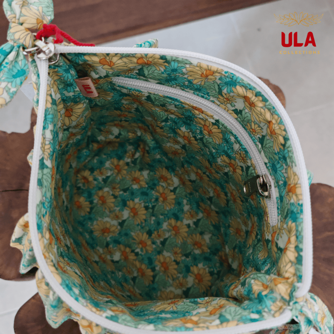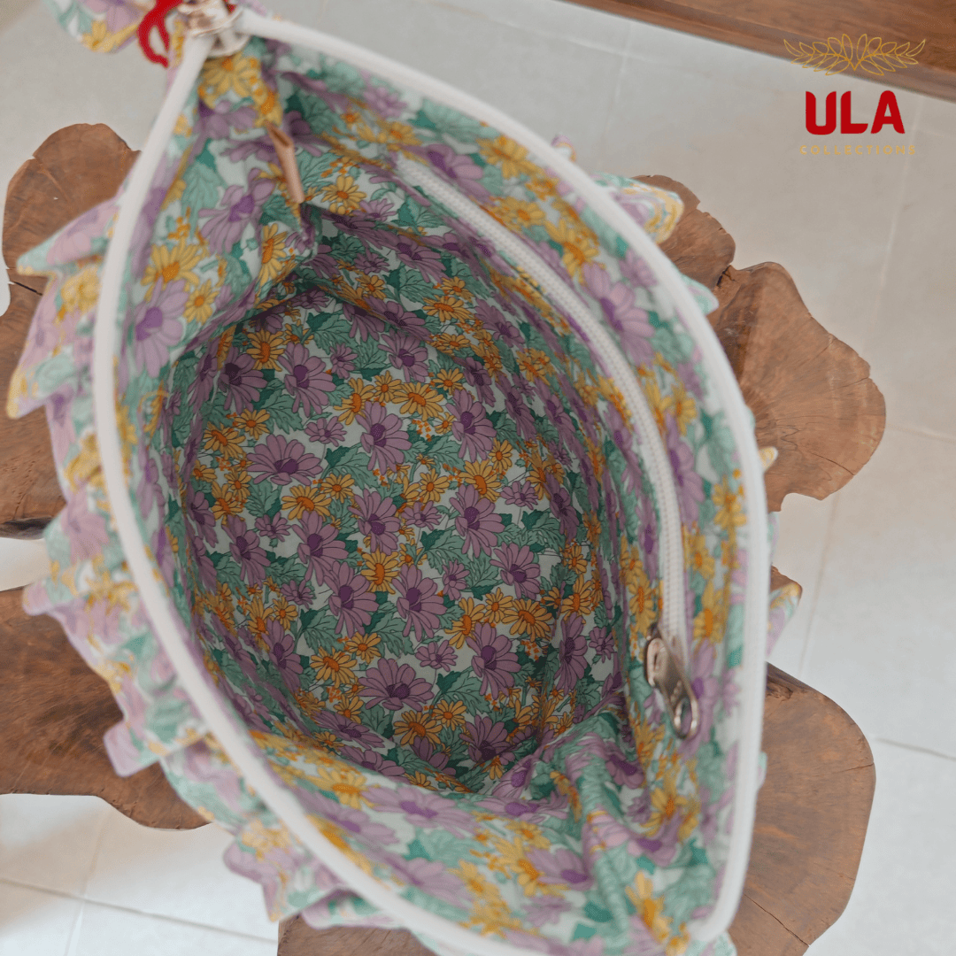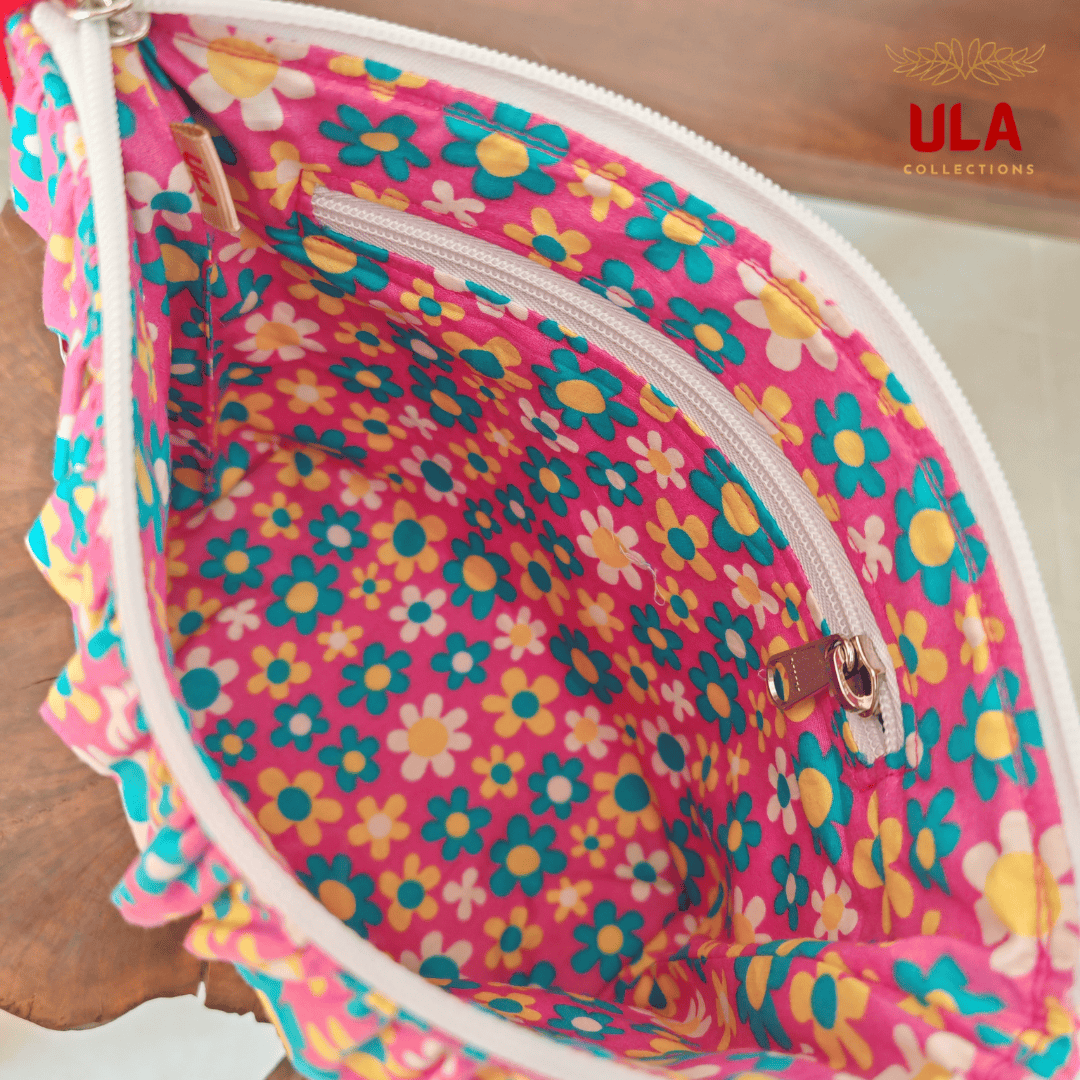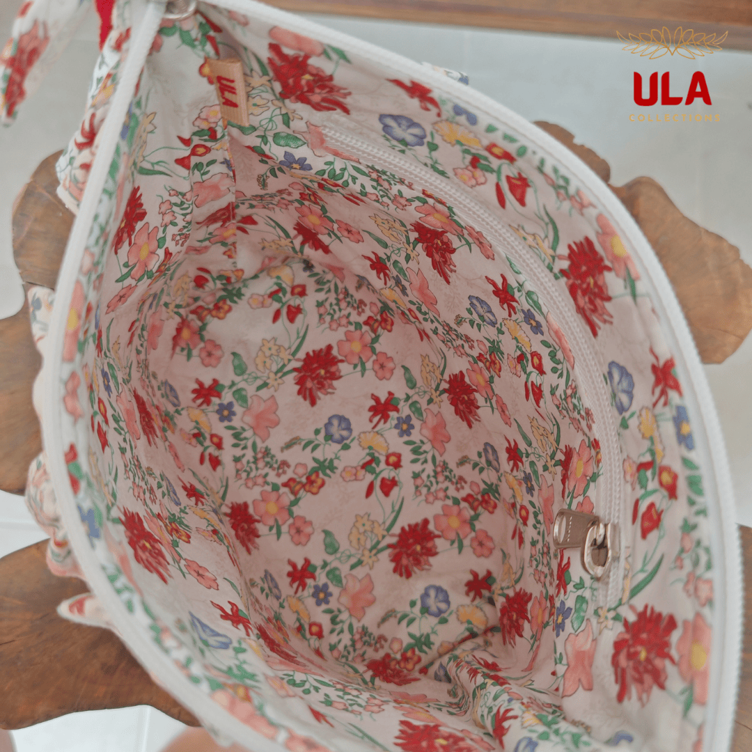 Discover the ULA Cotton Charm Wristlet Pouch—where artisanal beauty meets everyday function. This handcrafted companion is thoughtfully made from 100% cotton and durable canvas, featuring a unique cohesive design that is fully lined with the same vibrant floral pattern as the exterior.