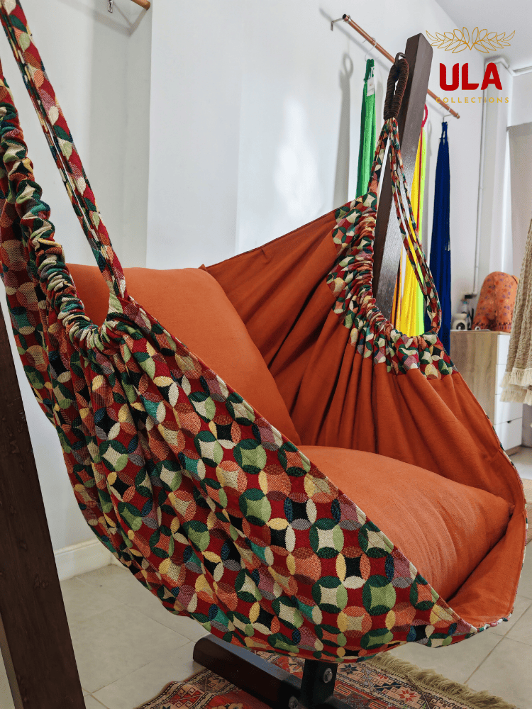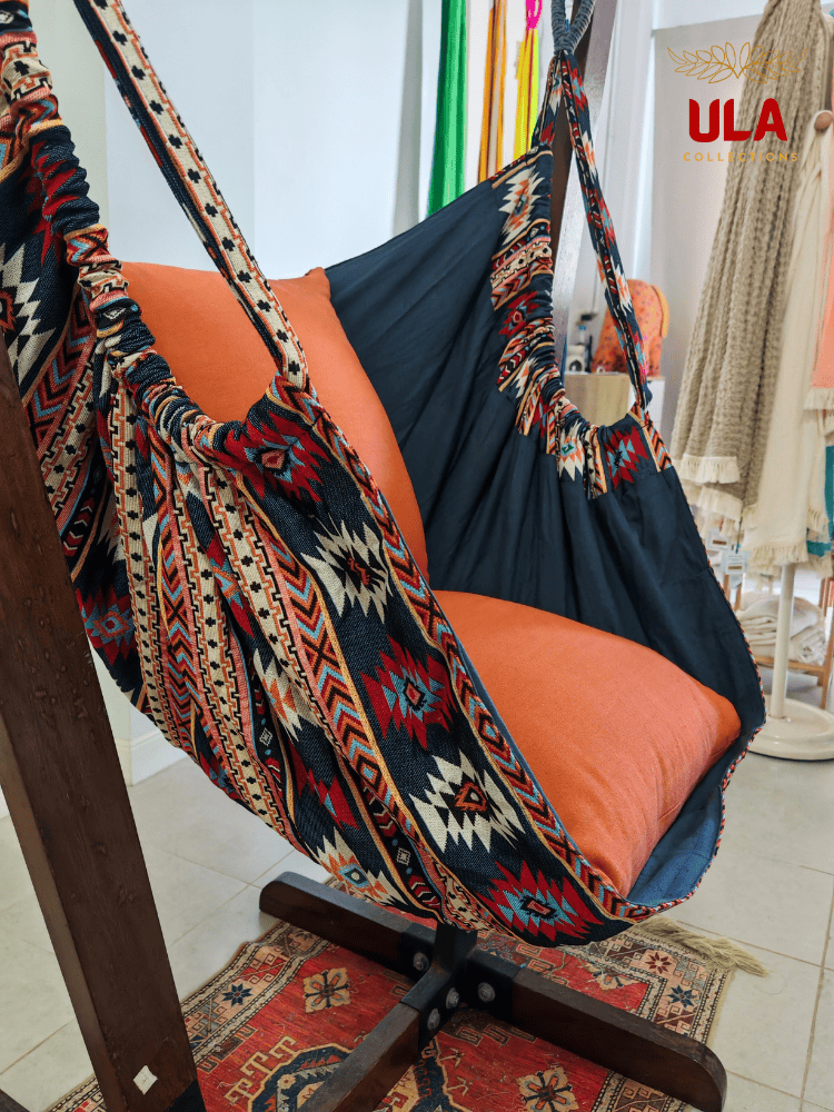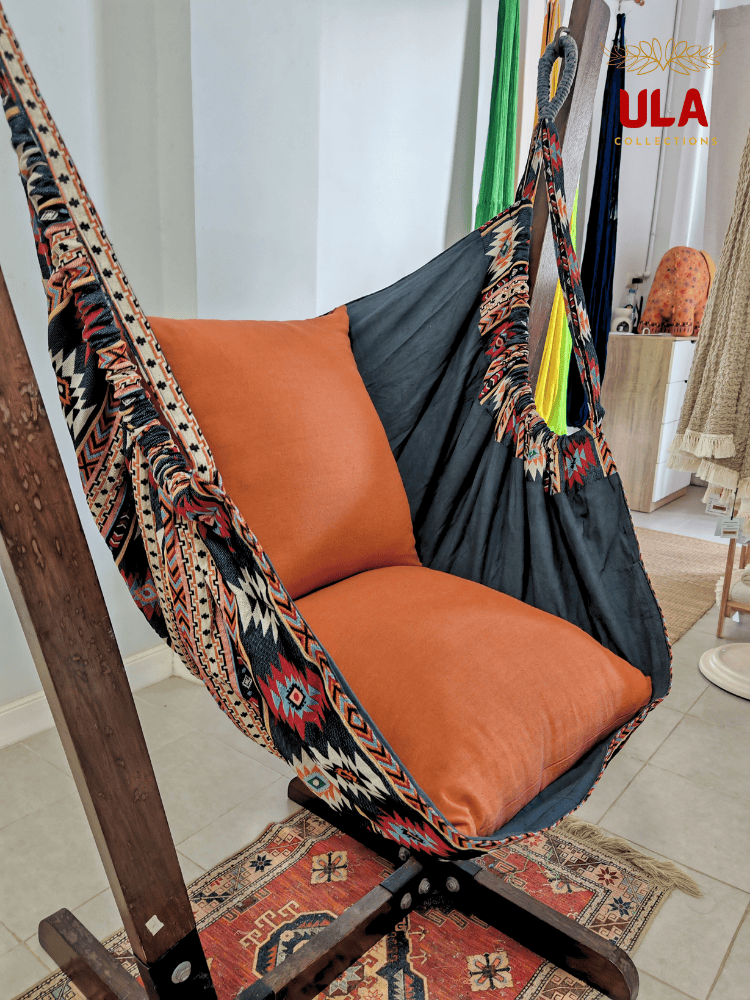 Enjoy relaxing moments with the ULA -Thick Woven Fabric Hammock Chairs — carefully handcrafted by skilled artisans. Each piece is more than just a seat; it is a unique work of art that reflects the identity of ULA Collections and carries a beautiful cultural touch.