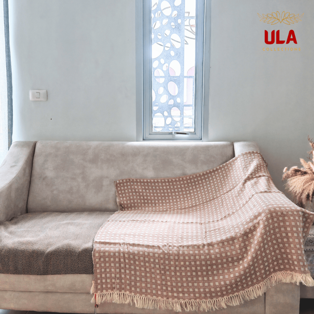 Experience the artisanal comfort of our ULA throws, blankets, and covers – Pastel collection. Woven from 100% natural cotton and cotton blend in Thailand, these beautiful throws feature unique textures (some with two distinct sides!) and a charming tasseled fringe, perfect for adding cozy elegance to your space.