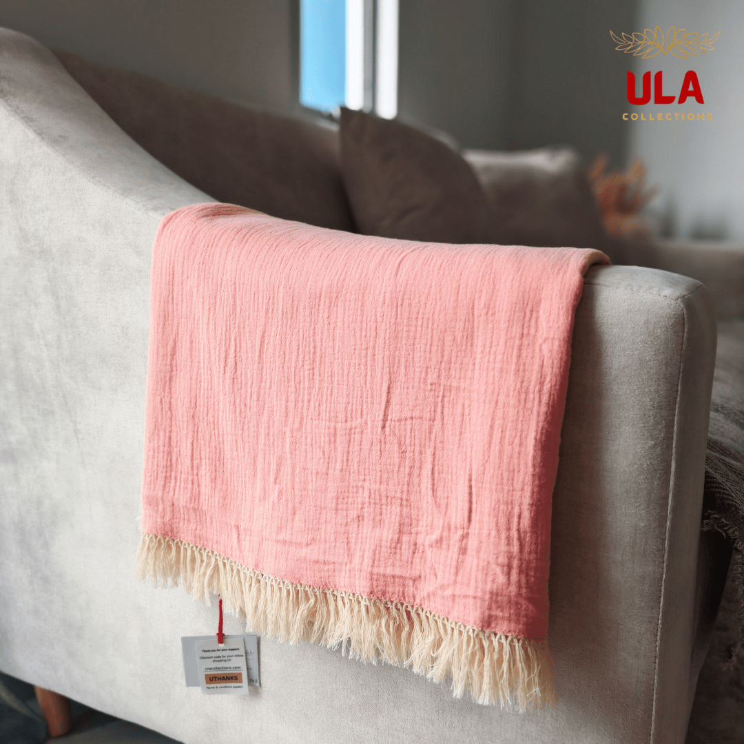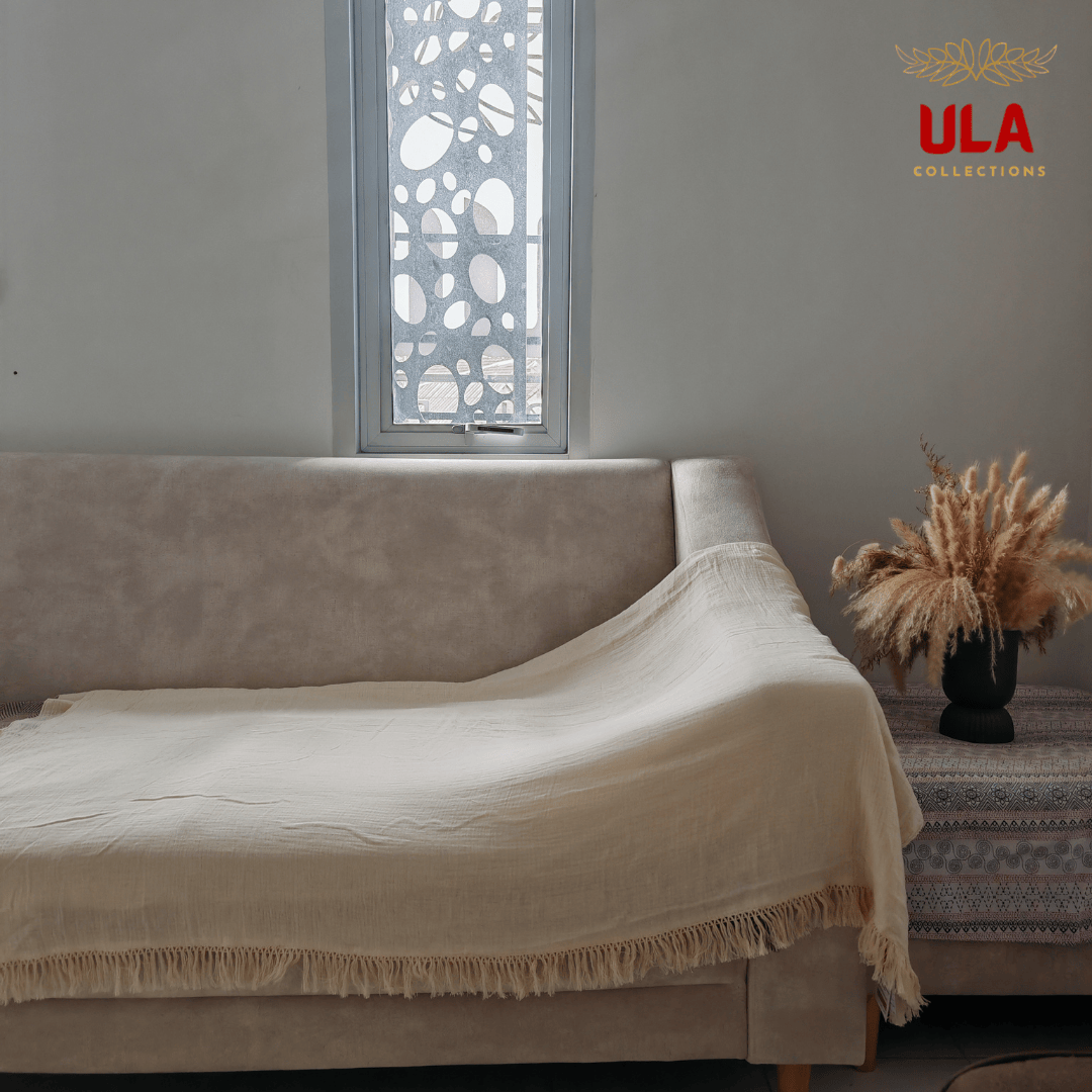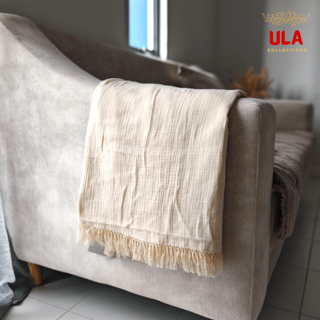 Introducing the ultimate layer of comfort: our ULA Salu Collection throw, blanket, and cover. Crafted from premium, double-layered cotton salu fabric, this piece is designed to be the softest, most breathable layer in your home, reminiscent of a cloud.