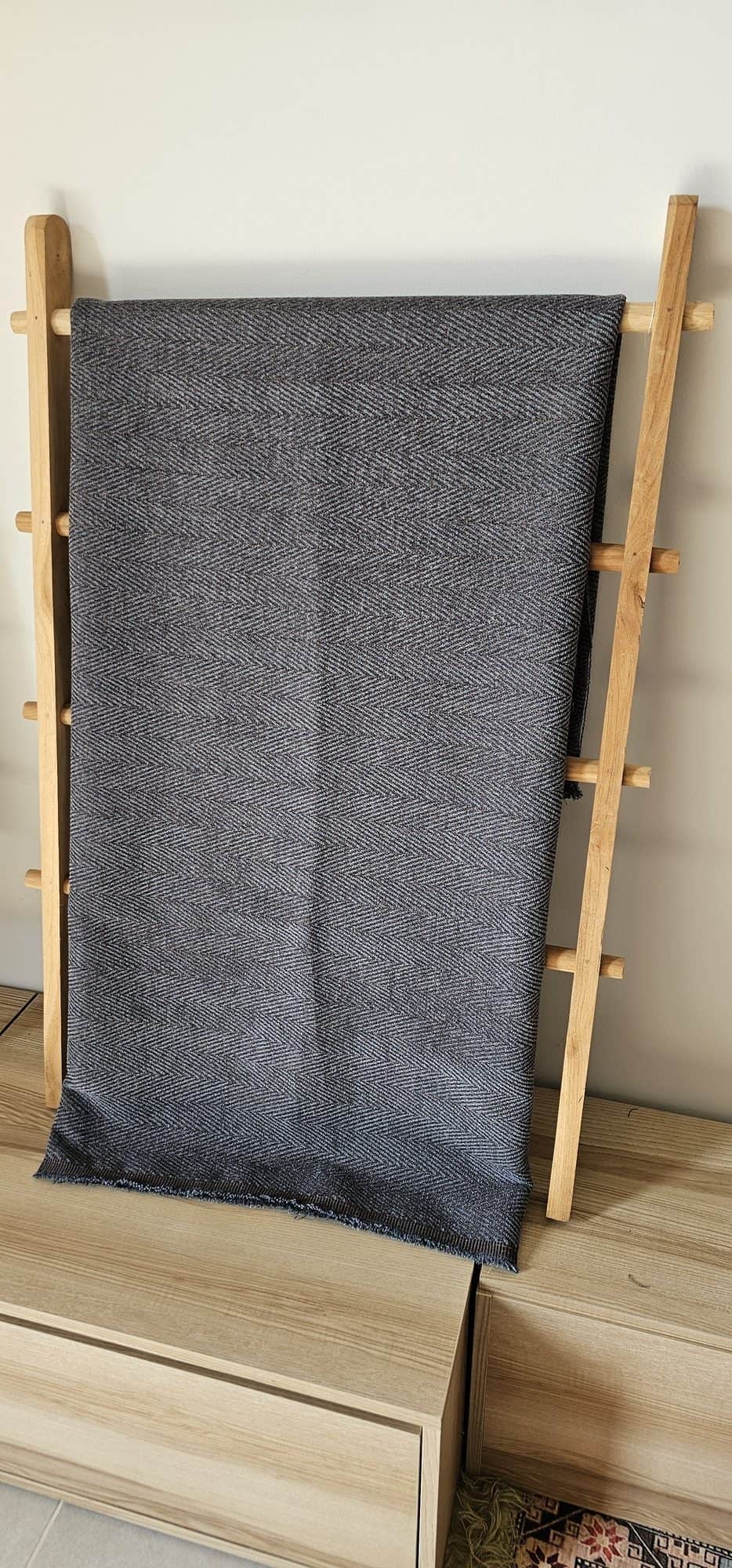 Cotton Wool Herringbone Green Fabric: A premium blend of soft Cotton and warm Wool featuring a sophisticated Herringbone weave. Ideal for elegant, cozy home decor and luxury accessories.